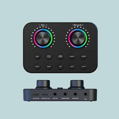 การ์ดเสียง F10เครื่องผสมเสียงสดพร้อมเอฟเฟกต์เพลงดีเจสำหรับบันทึกพีซีและเล่นเกม