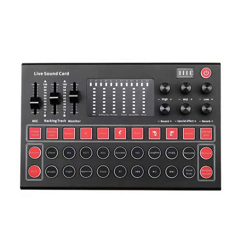 V9SJ การ์ดเสียงไมโครโฟนมิกเซอร์ผสมเสียงสดสตรีมเมอร์ความบันเทิงส่วนตัวสตรีมเมอร์บันทึกการ์ดเสียง